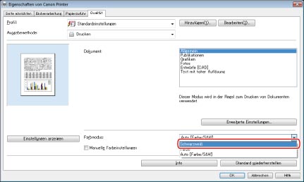 Abhängig von Betriebssystem, Typ und Version des Druckertreibers kann sich die Anzeige unterscheiden.
