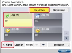 Wählen Sie [Persönlich] → Wählen Sie die persönliche Taste, die Sie ändern möchten → Berühren Sie die Taste [N. Name].
