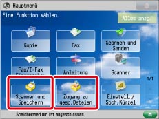 Berühren Sie die Taste [Scannen und Speichern] oder [Zugang zu gesp. Dateien] auf dem Display <Hauptmenü>.