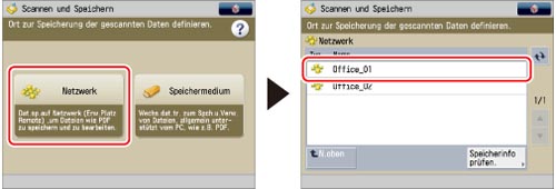 Berühren Sie die Taste [Netzwerk] → Wählen Sie den gewünschten Speicherort.