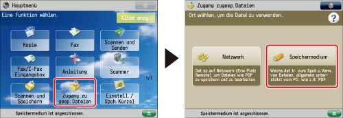 Berühren Sie die Taste [Zugang zu gesp. Dateien] → [Speichermedium].