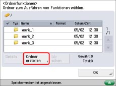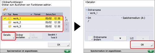 Wählen Sie den gewünschten Ordner → Berühren Sie die Taste [Details] → Bestätigen Sie durch Berühren der Taste [OK].