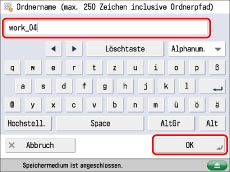Geben Sie einen Namen für den Ordner ein → Bestätigen Sie durch Berühren der Taste [OK].