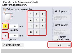 Berühren Sie die Tasten [X] oder [Y] → Geben Sie einen Wert ein → Bestätigen Sie durch Berühren der Taste [OK].