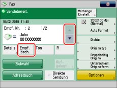 Wenn der Empfänger mithilfe des Lokalen Adressbuchs oder des Remote Adressbuchs definiert wurde: