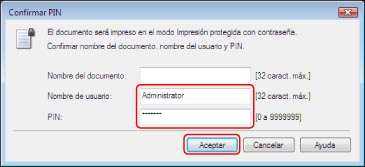 Aparece el cuadro de diálogo [Confirmar PIN].