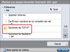 Pulse [Preferencias] → [Red] → [Opciones de TCP/IP].