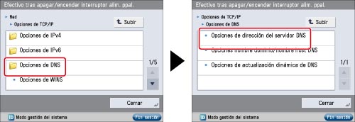 Pulse [Opciones de DNS] → [Opciones de dirección del servidor DNS].