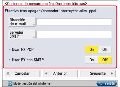 Pulse [Opciones de comunicaciones] → defina el servidor de e-mail.