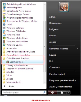 (Iniciar) → [Todos los programas] → [Color Network ScanGear].