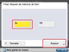 Pulse [Establecer buzón de fax/I-fax] → [Usar bloqueo de memoria de fax].