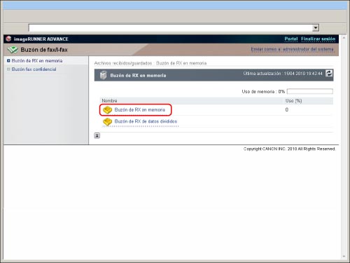Pulse [Buzón de fax/I-fax] → [Buzón RX en memoria] → [Buzón RX en memoria].