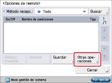 2. Seleccione la condición de reenvío que desea imprimir → pulse [Otras operaciones].