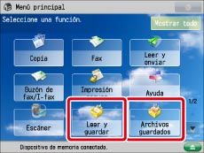 Pulse [Leer y guardar] o [Archivos guardados] en la pantalla Menú principal.