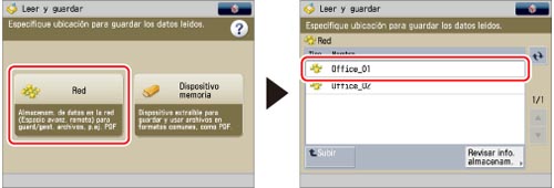 Pulse [Red] → seleccione la ubicación de almacenamiento que desee.