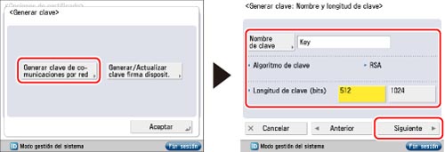 Tras pulsar [Generar clave], no podrá usar ninguna de las claves hasta no haber generado y guardado un par de claves.