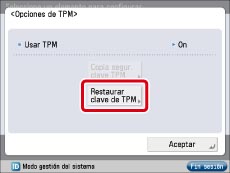 La seguridad que ofrece TPM no garantiza la protección completa de los datos y el hardware. Tenga en cuenta que Canon no se hace responsable de los fallos ni los perjuicios ocasionados por el uso de este modo.