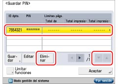 para que aparezca el departamento cuyo PIN desee cambiar → seleccione el departamento → pulse [Editar].
