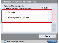 Para establecer una densidad de fondo que sea diferente de la imagen de filigrana de seguridad más uniforme de la impresión de muestra correspondiente al valor estándar, es necesario ajustar [Densidad del área oculta] a una densidad próxima a la densidad del fondo.