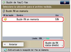 Se pulsa para comprobar el estado de los datos divididos y la capacidad que queda en el buzón de recepción de datos divididos.