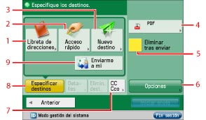 Se pulsa para mostrar los métodos para especificar los destinos o la lista de destinos. |