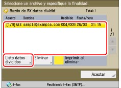 Seleccione los datos divididos que desee confirmar → pulse [Detalles].