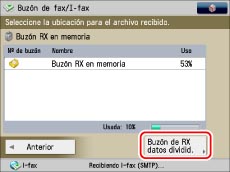 Pulse [Buzón de fax/I-fax] → [Buzón RX en memoria].