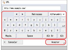 Para conocer las instrucciones acerca de la introducción de caracteres, consulte "Introducir caracteres desde la pantalla táctil".
