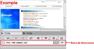 para mostrar el historial de URL introducidas. Puede seleccionar una página web del historial y mostrarla. Para eliminar el historial de URL introducidas, pulse [Borrar todo] en [Historial] (desde Menú). (Consulte "Borrar el historial de URL".)|