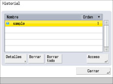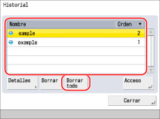 Seleccione [Nombre] u [Orden] para clasificar el historial de URL en orden ascendente o descendente.