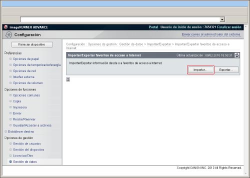 Cuando importe los favoritos desde un archivo guardado, se sobrescribirán los favoritos previamente guardados en el equipo.