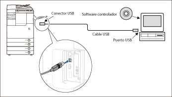 No es posible especificar un ordenador conectado al equipo a través de una conexión USB como destino para trabajos de envío o trabajos reenviados. Además, con ese ordenador, no podrá utilizar el IU remoto ni la función Network ScanGear.