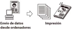 Puede usar este equipo como impresora de red de alta velocidad. Puede usar diversos modos de salida, como la impresión a doble cara y la alineación de páginas. Si se activa el Kit de Impresora PS, puede utilizar este equipo como impresora postscript con el software Adobe PostScript3.