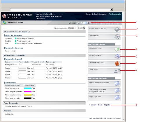 Las operaciones disponibles para el IU remoto pueden variar entre el administrador y el usuario general.