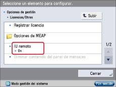 Si establece [IU remoto] en 'On', podrá abrir un puerto necesario. No obstante, se recomienda que se establezca en 'Off' si no se utiliza un puerto. Si deja el puerto abierto, un usuario no autorizado podrá acceder al equipo.