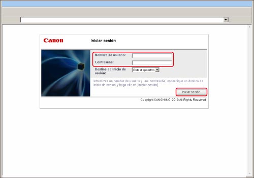 Si se establecen la autenticación predeterminada y las opciones del administrador del sistema, y la gestión de ID de departamentos no está establecida, siga el procedimiento que se indica a continuación para iniciar sesión.