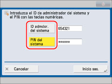 Si se establecen las opciones de administrador del sistema (ID de admdor. del sistema/PIN del sistema)