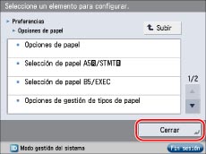 Cuando acabe de especificar las opciones, pulse [Cerrar ses.] en la parte inferior derecha de la pantalla para cerrar sesión.