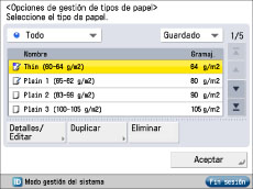 Cuando guarde las opciones del tipo de papel personalizado, asegúrese de cambiarle el nombre. No es posible cambiar las opciones de los tipos de papel prefijados guardados en el equipo.