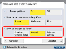 El tamaño de datos y la calidad de imagen de fondo están entre los de [Prioridad tamaño datos] y [Priorizar imagen].