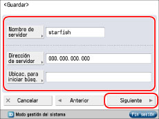 Pulse [Dirección de servidor] → introduzca la dirección del servidor → pulse [Aceptar].