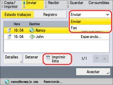 Pulse la lista desplegable → seleccione [Enviar] → pulse [Imprimir lista].