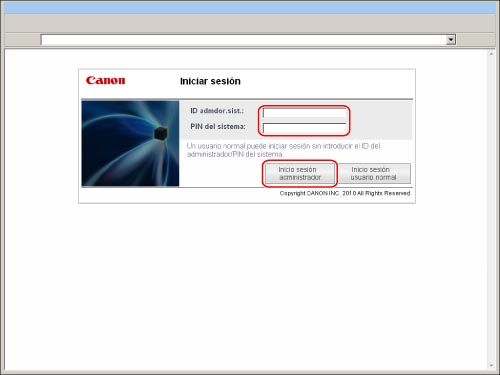 Para conocer las instrucciones acerca de cómo usar los servicios de inicio de sesión, consulte "MEAP". Si no se ha establecido la función de autenticación, no aparece la pantalla de inicio de sesión.