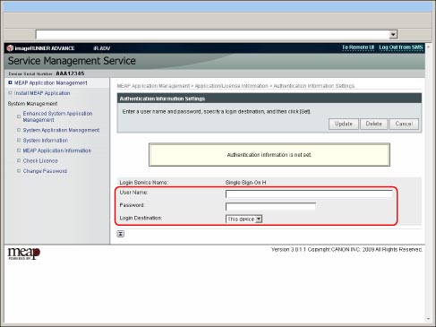 Si la información de autenticación se ha establecido correctamente, aparece el mensaje <Authentication information is set>. Si se produce un error al configurar la información de autenticación, aparecerá un mensaje de error.