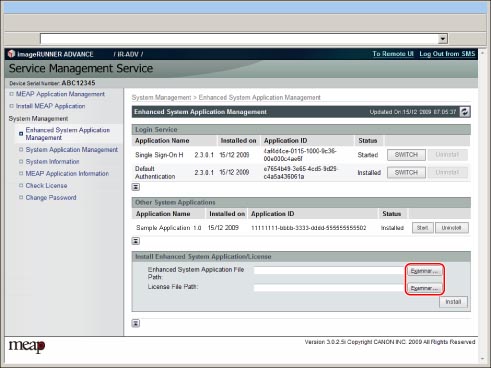 Al instalar una aplicación de sistema, debe especificar tanto el archivo de la aplicación como el archivo de licencia.