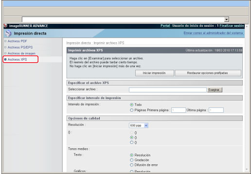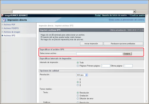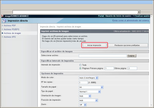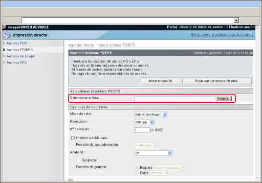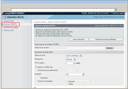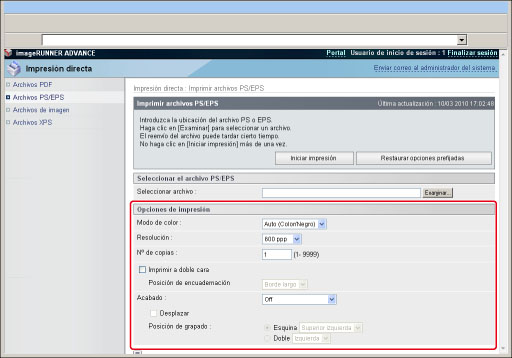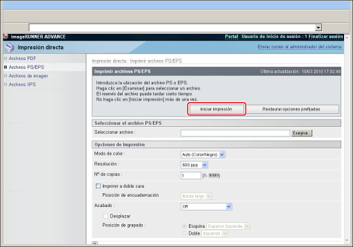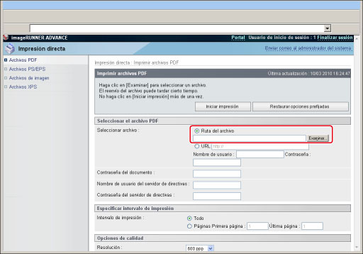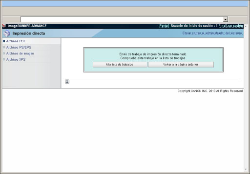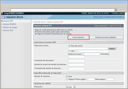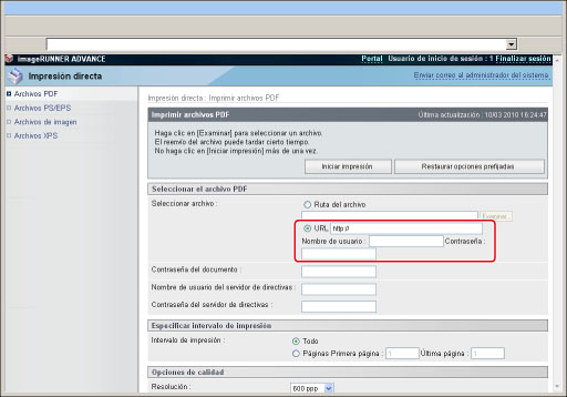 Si especifica un archivo PDF mediante su URL, el siguiente trabajo de impresión no se podrá procesar hasta que se descargue el archivo PDF o hasta que el navegador se desconecte del servidor web.