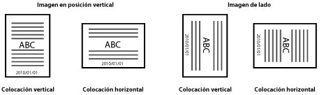 También es posible ajustar la posición de la fecha. (Consulte "Guardar/editar/eliminar texto definido por el usuario para números de página y filigranas".)