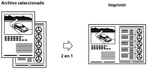 Puede reducir automáticamente un archivo de 2, 4, 6, 8, 9 ó 16 páginas para que quepan en un tamaño de papel determinado.
