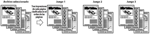 Cuando imprima varias impresiones de un archivo, puede clasificar la impresión en impresiones separadas.