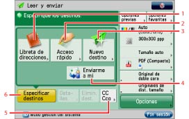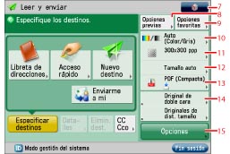 Se pulsa para seleccionar y usar otros modos disponibles para leer y enviar. Establece funciones de envío útiles, como enviar juntos originales de distinto tamaño o de doble cara.